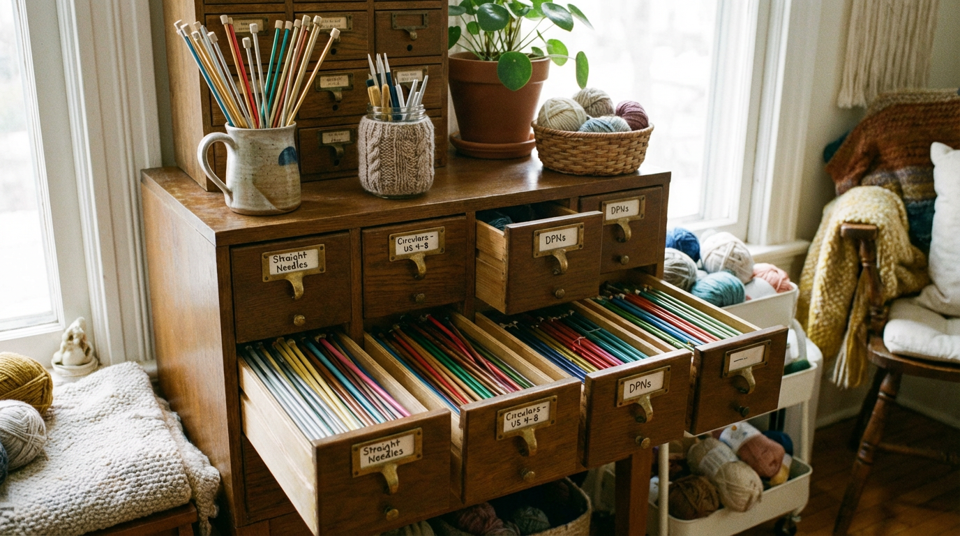 An organized needle collection saves time and reduces frustration. These knitting needle storage solutions help protect your tools and simplify every project.